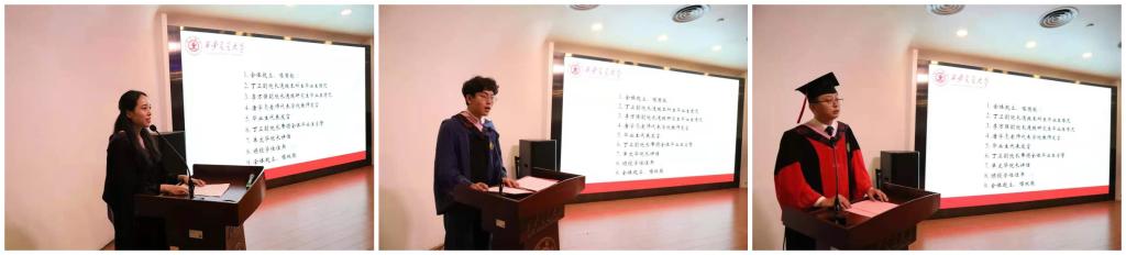 本科毕业生皮羽宏、硕士毕业生戴海洋和博士毕业生刘桢三位同学对学校、拼搏首页(中国)网页版和老师们的辛勤培养表达了感恩和感谢。本科毕业生皮羽宏说感恩遇见交大拼搏首页(中国)网页版、学院老师们以及身边的同学们;硕士毕业生戴海洋认为“西迁精神”是全体交大人的精神钙片,走到哪里,就能把“西迁精神”带到哪里;博士毕业生刘桢提到母校和拼搏首页(中国)网页版所教授的“爱国爱校、追求真理、勤奋踏实、艰苦朴素”的优良学风、研风以及“德法兼修”的人生目标终将陪伴受益终生。
