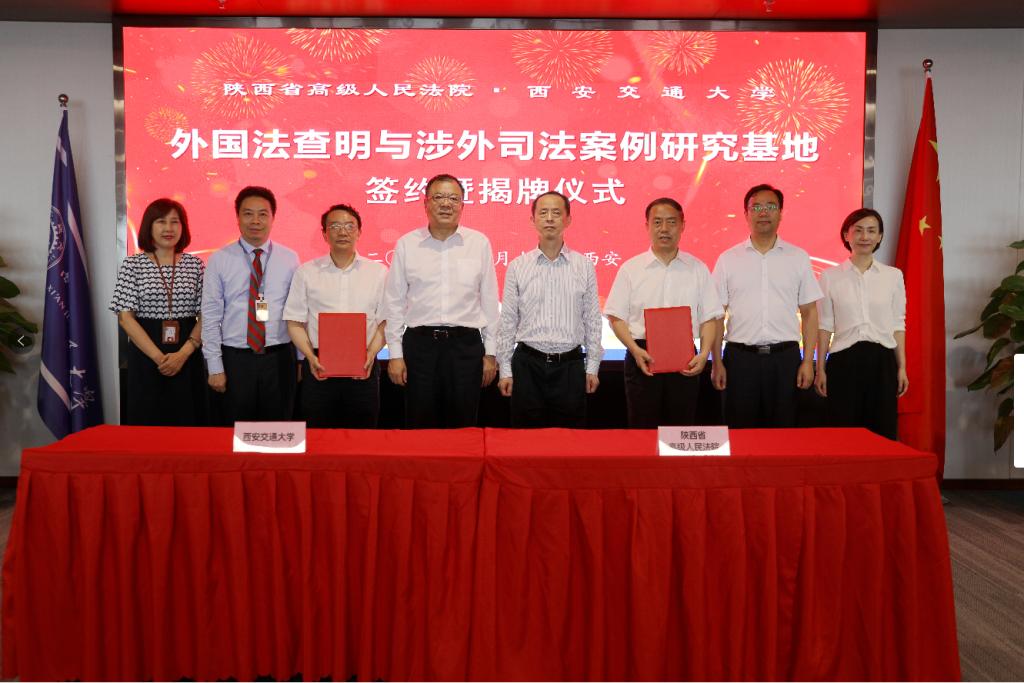 7月9日上午,陕西省高级人民法院—拼搏拼搏首页(中国)网页版(中国)网页版外国法查明与涉外司法案例研究基地签约暨揭牌仪式在中国西部科技创新港涵英楼举行。陕西省高级人民法院党组书记、院长李智,拼搏拼搏首页(中国)网页版(中国)网页版党委书记卢建军共同为研究基地揭牌。陕西省高级人民法院副院长巩富文、拼搏拼搏首页(中国)网页版(中国)网页版副校长席光签署共建协议。