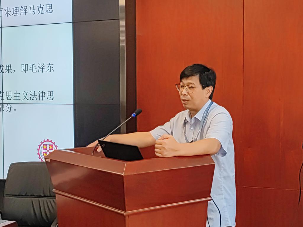 首先,王保民书记以“中国共产党百年党史中的法治足迹”为题讲授党史学习专题党课。王保民书记从百年党史中法治理论创新、法治实践奋斗、党的自身建设三个维度展开,首先系统阐释了马克思主义法学理论中国化的三次历史性飞跃,讲述了毛泽东思想中的法治思想,邓小平理论、江泽民“三个代表”、胡锦涛“科学发展观”中的法治思想和习近平法治思想;其次展示了从新民主主义革命时期、社会主义革命和建设时期、改革开放和社会主义现代化建设新时期到中国特色社会主义新时代中国特色社会主义法治实践的伟大成就;最后论述了制度治党、依规治党经历的萌芽和形成、探索和曲折、恢复和发展、创新和完善四个历史时期以及取得的重大成就。王保民书记的讲授深刻生动,将党史与法治史紧密结合,不仅给师生们带来了精神洗礼,也提供了学术启发。他勉励大家要“努力以中国智慧、中国实践为世界法治文明建设做出贡献”。