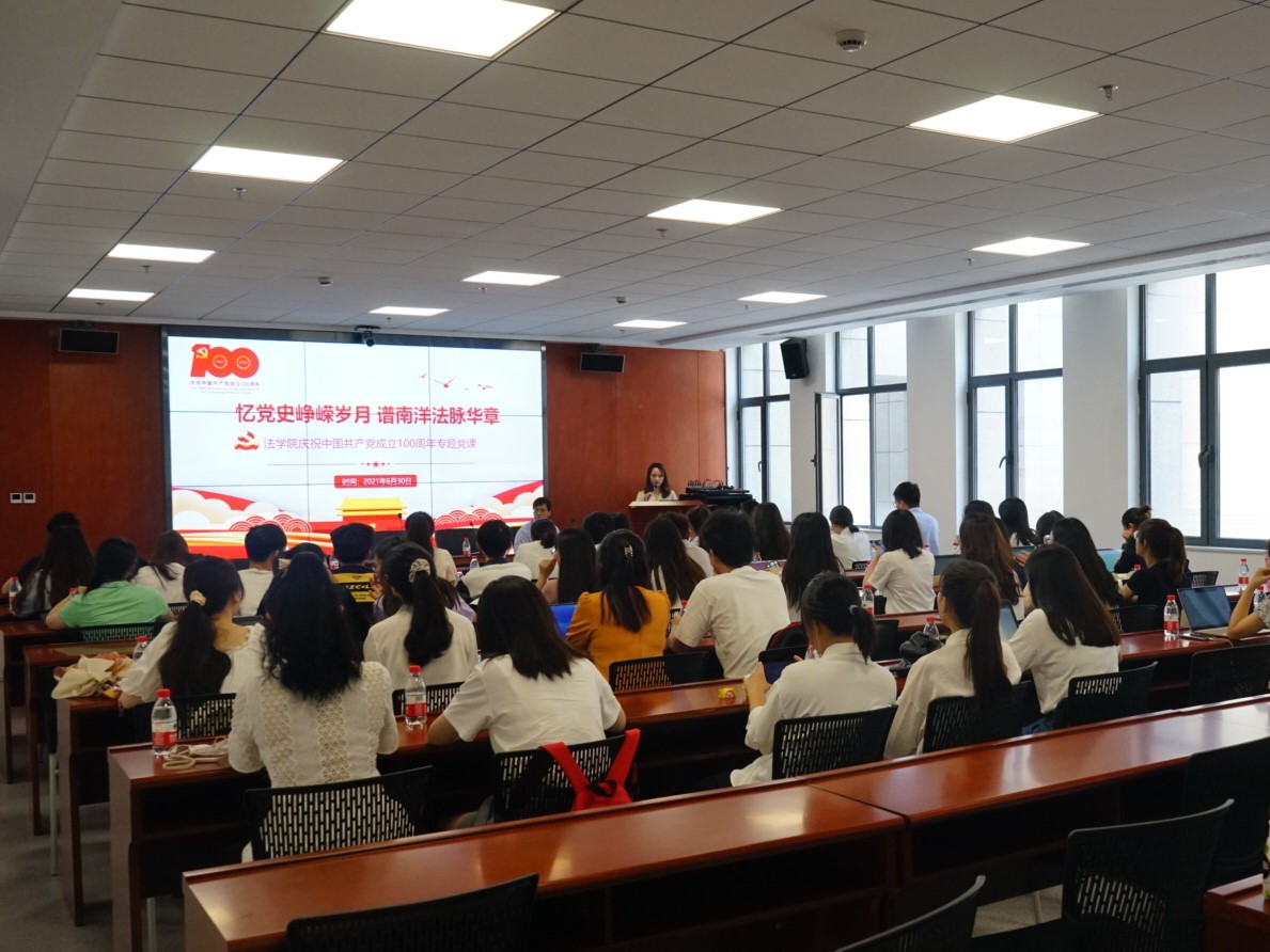 6月30日下午,拼搏首页(中国)网页版党总支在创新港涵英楼5-3004举办“忆党史峥嵘岁月,谱南洋法脉华章”专题活动,热烈庆祝中国共产党成立100周年!拼搏首页(中国)网页版党总支书记王保民出席并讲授党史学习专题党课,拼搏首页(中国)网页版各支部书记、党员代表、入党积极分子参加活动。活动由拼搏首页(中国)网页版党总支秘书李晶主持。