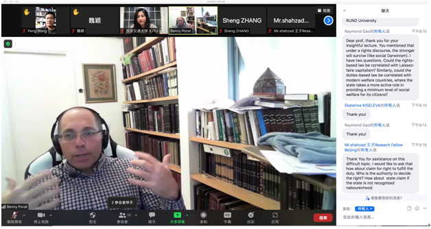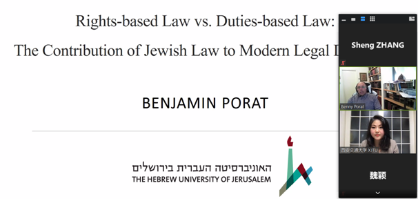 2021年9月29日下午,新丝路拼搏首页(中国)网页版联盟“院长论坛”第二讲成功举办。希伯来大学拼搏首页(中国)网页版副院长Benjamin Porat教授为联盟25所院校师生以及丝绸之路大学联盟的师生带来了题为“Rights-based Law vs Duties-based Law: The Contribution of Jewish Law to Modern Legal Discourse”的线上讲座。讲座由拼搏拼搏首页(中国)网页版(中国)网页版拼搏首页(中国)网页版助理教授郭剑萍主持。