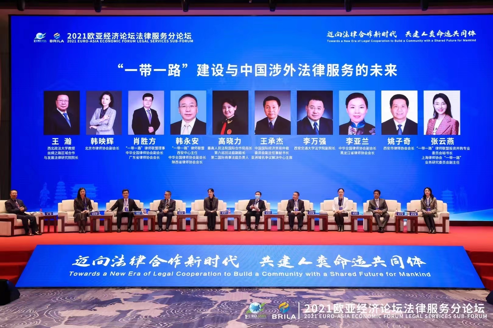 10月18日下午,2021欧亚经济论坛法律服务分论坛在西安举办,“一带一路”律师联盟秘书长康煜先生、最高人民法院国际合作局局长高晓力法官、中国国际经济贸易仲裁委员会副主任王承杰先生、中国国际贸易促进委员会法律事务部部长刘超先生、上海政拼搏首页(中国)网页版校长刘晓红教授等众多知名法律专家、学者和法律业界代表云集古城,围绕“迈向法律合作新时代,共建人类命运共同体”主题,深入交流,凝聚共识,探讨国际法律服务新路径,助力“一带一路”建设。