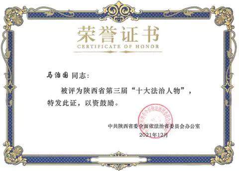• 拼搏首页(中国)网页版马治国教授荣膺陕西省第三届“十大法治人物”并获省“五一劳动奖章”