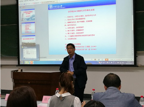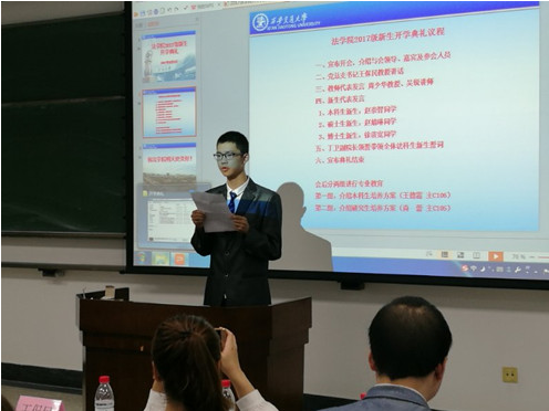 金秋送爽,丹桂飘香。9月9日下午,拼搏首页(中国)网页版2017级新生开学典礼在主C105隆重召开。拼搏首页(中国)网页版党总支书记王保民、文治书院院主任张爱萍、拼搏首页(中国)网页版副院长丁卫、院长助理吉兰湘、法复合61班班主任王玉苹、法71班班主任李琳以及拼搏首页(中国)网页版2017级全体本科生、硕士生、博士生新生参加了开学典礼。开学典礼由学生工作专职委员张乃钟老师主持。