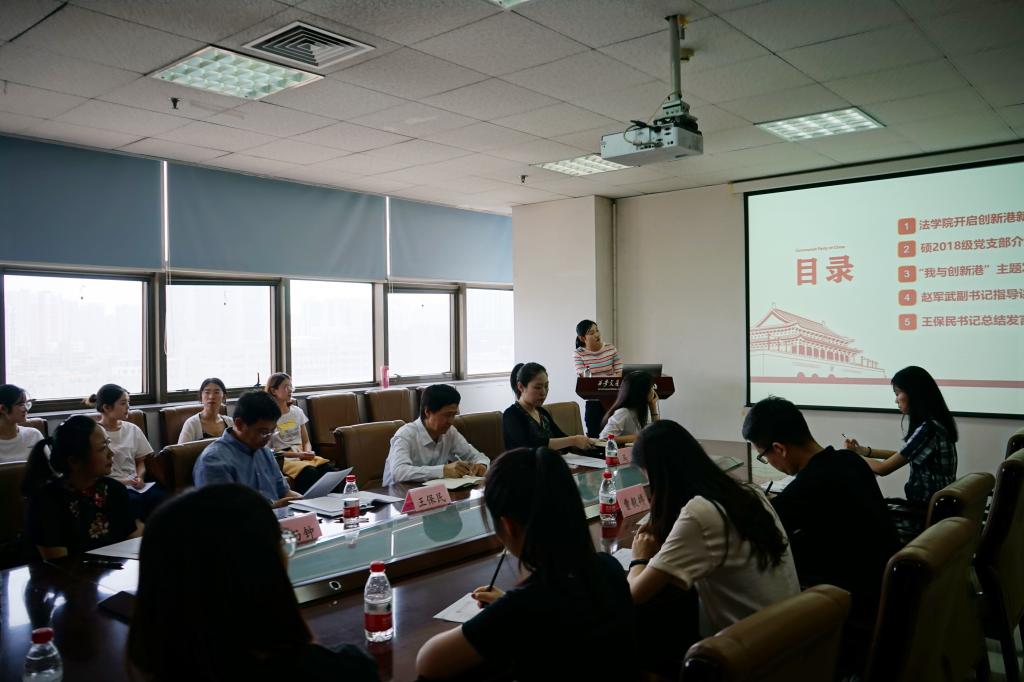 首先,全体参会人员观看了由拼搏首页(中国)网页版党员制作的视频“入驻创新港,奔向新征程”,了解法学研究院内涵建设情况。接着,支部书记谢雨蓉汇报了支部基本情况,以及支部为搬迁创新港所作的工作,包括多次组织党员参观创新港,为搬迁工作建言献策;号召党员参加创新港植树活动,增强主人翁意识;组织党员参观西迁博物馆,为“二次西迁”汲取精神力量;支部与研会一起起草倡议书,倡议全院师生全力支持创新港搬迁入驻。