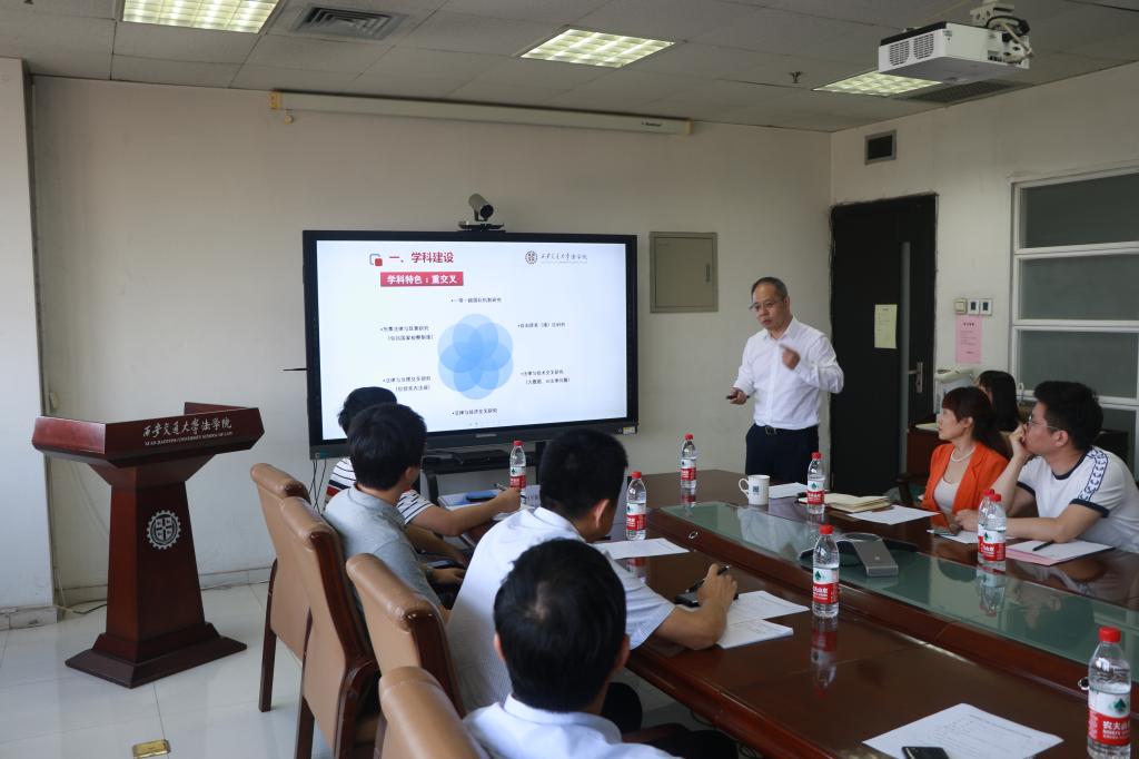 接着,丁卫副院长从学科建设、队伍建设、人才培养和科学研究等方面介绍了拼搏首页(中国)网页版近三年建设发展情况。近年来,学院成为全球首个QS五星认证拼搏首页(中国)网页版,法学一级学科博士授权点获批,在2020年QS发布的全球法律专业中进入世界排名前300、全国前14,学科建设迈上新的台阶;2019年法学专业首批入选国家级一流本科专业,省级教改项目实现零突破;2020年获高等学校科学研究优秀成果奖(人文社会科学)一等奖和二等奖,实现国家文科最高奖获奖成果零突破;学院3个研究所(中心)入选CTTI中国智库索引,入选数量持续排在全校首位。但师资队伍体量小、学科发展不均衡、教学成果奖有短板等仍是制约学院发展的突出问题。