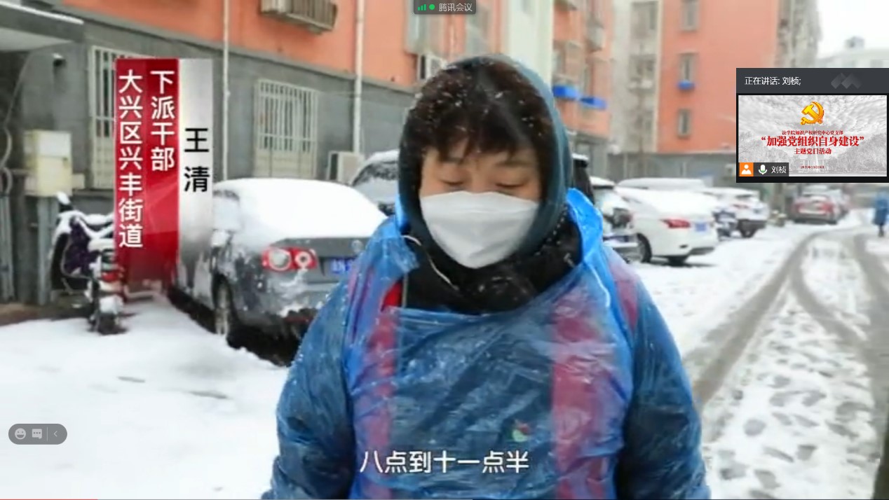 随后与会党员同志共同观看了纪录片《“疫”无情 人有爱——临时党支部筑牢“红色防线”》,该片记录了建于上世纪80年代的北京黄村西里社区在兴丰街道支援社区的下派干部王清和其他下派干部的支援和下沉社区的干部和临时党支部的支持下,有效组织黄村西里社区的工作人员把力量集中到人口摸排等更为繁琐的工作上来,最终使疫情防控工作开展得有条不紊,充分体现了夯实基层党组织建设的重要性。