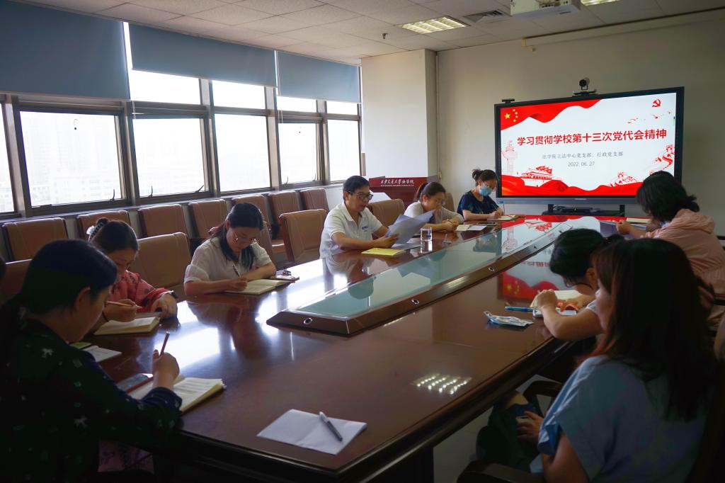 2022年6月27日下午,拼搏首页(中国)网页版立法与党内法规中心党支部与行政党支部召开联合组织生活会,邀请拼搏首页(中国)网页版党总支书记王保民宣讲学校第十三次党代会精神。立法与党内法规研究中心党支部书记杜军强主持会议。