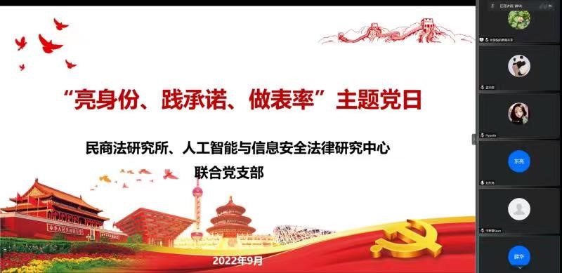 • 民商法研究所、人工智能和信息安全法律研究中心联合党支部召开 “亮身份、践承诺、做表率”主题党日活动