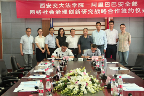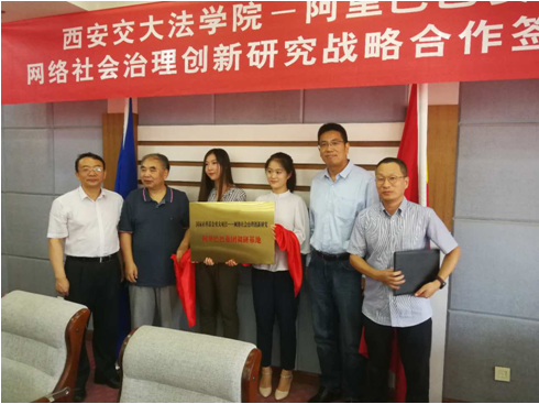 单文华院长与侯金刚总监代表双方签署了拼搏拼搏首页(中国)网页版(中国)网页版拼搏首页(中国)网页版与阿里巴巴安全部网络社会治理战略合作协议书。西安交大副校长席光、信息安全法律研究中心主任马民虎与阿里巴巴集团首席风险官刘振飞、安全部资深总监侯金刚,为“国家社科基金重大项目——网络社会治理创新研究阿里巴巴集团调研基地”揭牌。