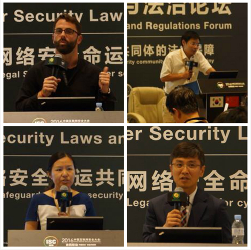 8月16日-18日,第四届中国互联网安全大会(ISC2016)在北京国家会议中心隆重召开。本届大会聚集了全球70多家相关机构和众多专家学者、企业代表,就世界网络安全形势、网络空间战略、安全攻防实战等主题进行了深入探讨。大会以“协同联动:共建安全命运共同体”为主题,设置了多个主题论坛。其中,网络安全与法治论坛备受瞩目,论坛邀请了国家互联网应急中心运行部副主任、正高级工程师严寒冰,法制日报社副社长周秉键,美国前国防部首席网络政策官、美国伯克利大学法学教授Jonathan Reiber,北京邮电大学互联网治理与法律研究中心常务副主任、副教授谢永江,中国信息通信研究院互联网法律研究中心主任李海英,韩国最高检大网络检查侦查官、网络安全法专家Chu Pill Hwan,拼搏拼搏首页(中国)网页版(中国)网页版信息安全法律研究中心主任、教授、陕西法学会信息安全法学研究会会长、中国网络安全协会副理事长马民虎,公安部第三研究所网络安全法律研究中心主任、副研究员黄道丽,拼搏拼搏首页(中国)网页版(中国)网页版信息安全法律研究中心博士马宁等国内外十余位顶级网络安全法领域专家就“网络安全命运共同体的法律保障”这一主题进行了广泛的研讨和交流。