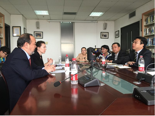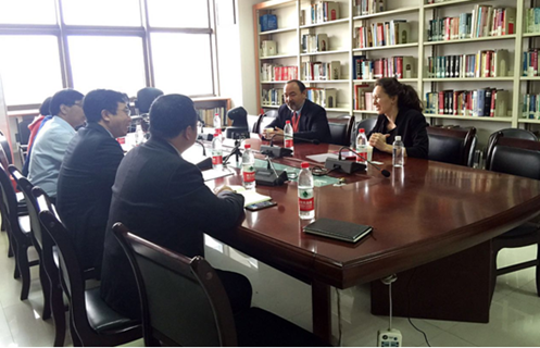2016年4月9日上午,哈萨克斯坦里海大学副校长Zholdasbek Nussenov、里海大学战略发展部部长Julia Kharkova来我院进行访问交流,我院院长单文华教授、书记王保民教授、副院长李万强教授、副院长丁卫副教授、院长助理吉兰湘老师、丝绸之路国际法与比较法研究所中亚室主任索菲亚教授、丝绸之路国际法与比较法研究所所长助理张生副教授以及外事秘书郭庆在丝绸之路国际法与比较法研究所与客人进行了会谈。宾主双方重点就在里海大学设立有关丝绸之路联合研究机构以及联合培养本科生和硕士生事宜进行了详细的沟通并达成了初步意向。
