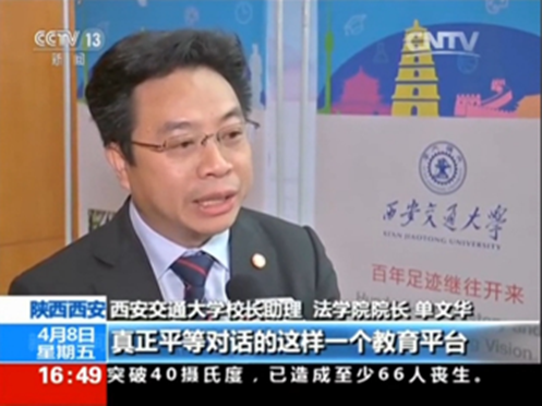 4月8日下午,中央电视台新闻频道(CCTV-13)新闻直播间栏目聚焦西安交大,推出组合报道,隆重介绍了西安交大创建“丝绸之路大学联盟”和中国西部科技创新港等重大举措,还着重关注了西安交大丝绸之路国际法与比较法研究所与“丝绸之路拼搏首页(中国)网页版联盟”。