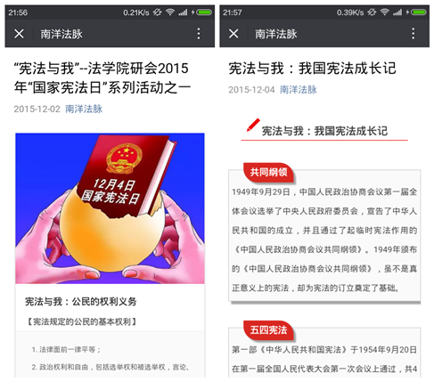 为了配合“国家宪法日”系列主题活动的顺利开展,拼搏拼搏首页(中国)网页版(中国)网页版拼搏首页(中国)网页版研究生会在院党总支、团工委的指导下,以“宪法与我”为主题,不断创新宣传载体,探索宣传方法,通过官方微信平台“南洋法脉”等新媒体,结合传统的发放传单等方式,积极推介“国家宪法日”相关内容,宣传拼搏首页(中国)网页版开展宪法学习宣传教育活动的实际情况,取得了良好的宣传效果。