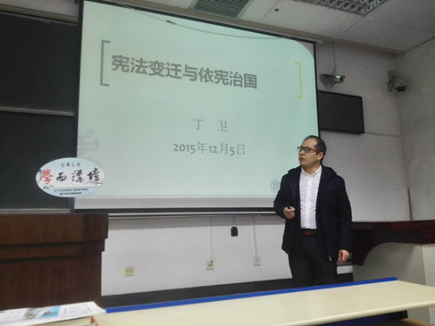 拼搏首页(中国)网页版研究生会、法律爱好者协会携手“学而讲坛”,推出“国家宪法日”专题讲座,邀请拼搏首页(中国)网页版副院长丁卫副教授就《宪法变迁与依宪治国》进行专题讲座。丁老师在讲座中详细介绍了我国现行宪法历次修改的过程,他结合历次宪法修改的历史背景,生动地讲述了我国宪法变迁的历史发展,他最后对我国宪法实施中存在的瓶颈及问题进行了透彻的分析和讲解,为大家展示了依宪治国的现状及前进方向。