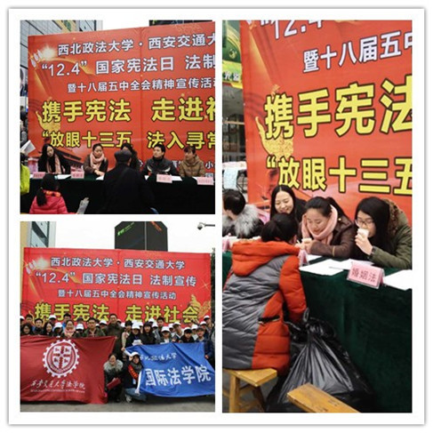 让守宪成为国民每天的生活方式”是实现法治中国建设的基本保障。为了普及宪法知识,推动全社会知法、用法、守法、护法意识的形成,拼搏拼搏首页(中国)网页版(中国)网页版拼搏首页(中国)网页版与西北政法大学国际拼搏首页(中国)网页版共同在西安市雁塔区飞炫广场举办了主题为“法入千万家”普法宣传活动,通过分发法律宣传单、法律意识调查问卷、法律咨询、普法广播等形式,吸引了大批市民的关注。在法律咨询服务点,许多市民前来咨询,咨询内容涉及婚姻法、劳动合同法、民法等领域,包括离婚财产分配、离婚孩子抚养权归属、追讨薪资、借款追债等与大家生活密切相关的问题,咨询点的同学认真对待每一位前来咨询的市民,耐心回答他们的问题,赢得了一致好评。
