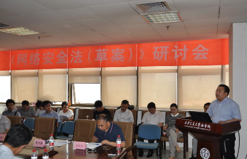 2015年6月,第十二届全国人大常委会第十五次会议初次审议了《中华人民共和国网络安全法(草案)》,在面向社会征求意见的同时,全国人大法工委专门致函拼搏拼搏首页(中国)网页版(中国)网页版信息安全法律研究中心向马民虎教授研究团队征求草案修改意见。7月16日,由陕西省法学会信息安全法学研究会、拼搏拼搏首页(中国)网页版(中国)网页版信息安全法律研究中心,联合公安部第三研究所、互联网实验室、中国法学会法律信息部举办的“《网络安全法(草案)》研讨会”在拼搏拼搏首页(中国)网页版(中国)网页版主楼E-910会议室召开,广泛听取理论界和实务界意见。