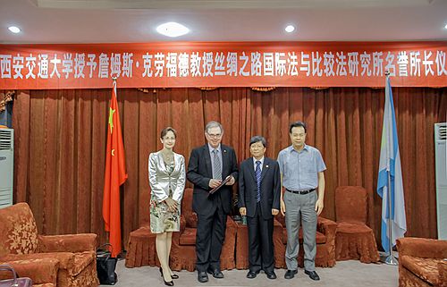 作为当今世界最著名和最有影响力的国际法学者之一,James Crawford教授于2013年入选西安交大拼搏首页(中国)网页版讲座教授。2014年,他被包括中国在内的27个国家提名为联合国国际法院大法官候选人。他的来访吸引了国内新闻媒体的密切关注,新华社、中国社会科学网、中国日报、陕西日报、陕西省外事办和新浪网都进行了报道。