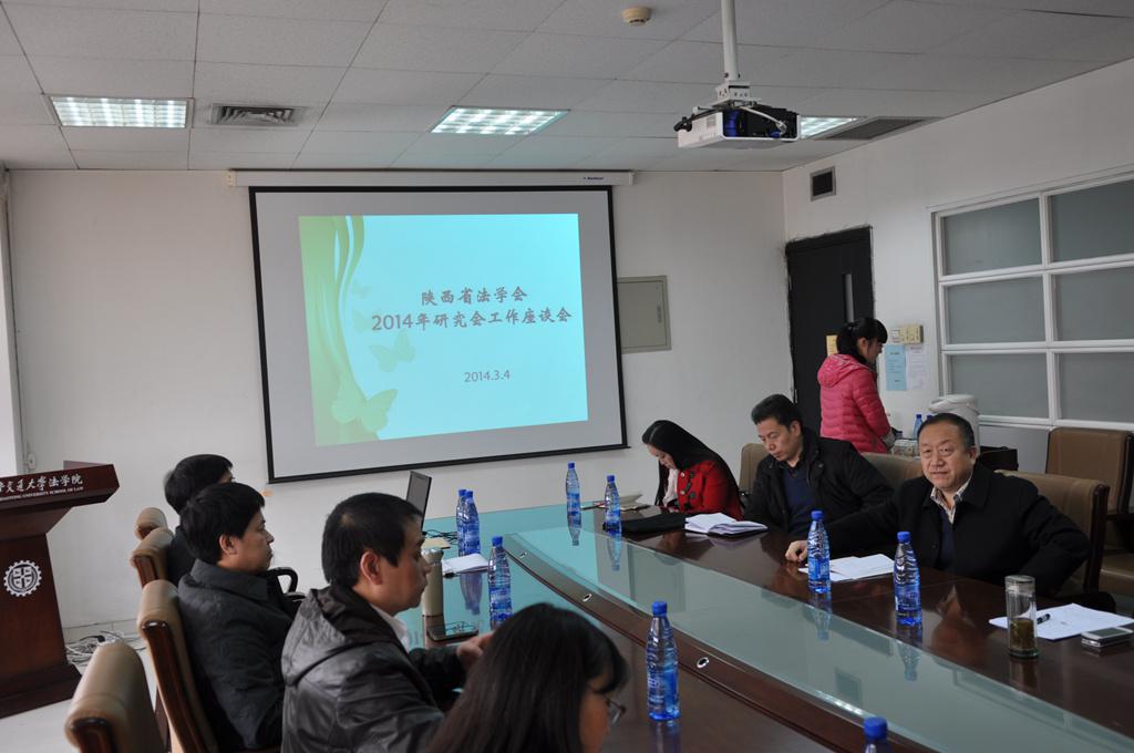 2014年3月4日下午,“陕西省法学会2014年研究会工作座谈会”在我校拼搏首页(中国)网页版主E910会议室召开,陕西省法学会专职副会长雷宝生,秘书长马艾妮,研究部主任魏清利,办公室主任樊志来等法学会领导参加了会议。陕西省法学会挂靠我校拼搏首页(中国)网页版的“科技法研究会”、“信息安全法研究会”、“立法学研究会”和“能源法研究会”的会长和秘书长应邀参加了座谈会。会议由陕西省法学会专职副会长雷宝生主持。