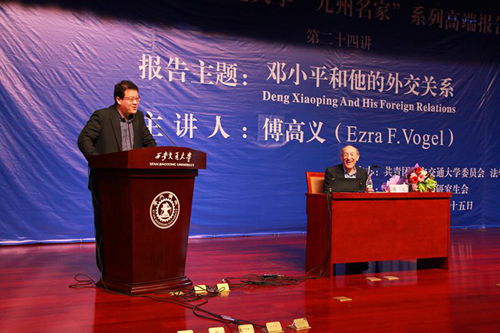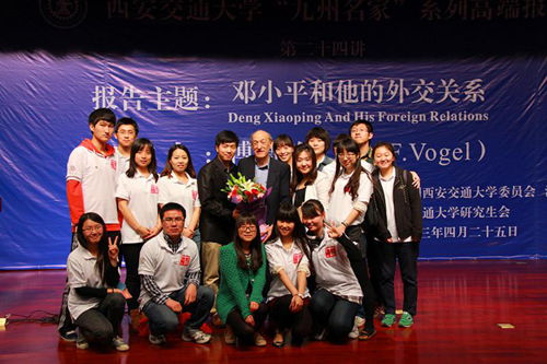 4月25日,由校团委和拼搏首页(中国)网页版共同主办的拼搏拼搏首页(中国)网页版(中国)网页版“九州名家”高端论坛专场报告会第二十四讲在主楼多功能报告厅举行,邀请美国哈佛大学亨利·福特二世社会学荣休教授、费正清东亚中心前主任、《邓小平时代》作者傅高义(Ezra F. Vogel)教授与西安交大师生分享“邓小平和他的外交关系”。党委书记王建华出席报告会并为傅高义先生赠送纪念品。报告会由拼搏首页(中国)网页版王江雨教授主持。拼搏首页(中国)网页版2074、2113班党支部全体成员担任会务工作。