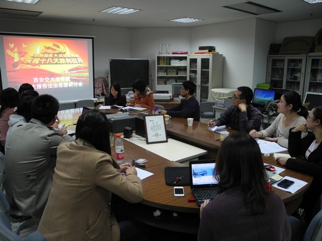 11月20日晚8点,拼搏首页(中国)网页版举办了学习十八大报告法治思想研讨会,由学院副院长、知识产权研究中心主任马治国教授、李晓鸣讲师组织,部分博士、硕士参加。