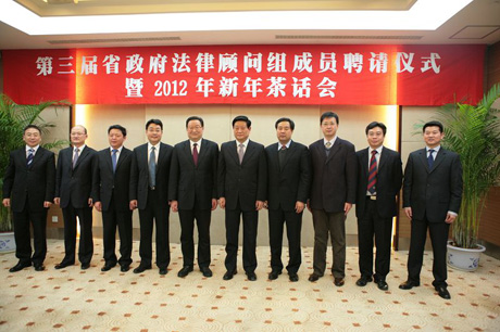 1月15日,陕西省第三届省政府法律顾问组成员聘请仪式暨2012年新年茶话会在西安召开,拼搏拼搏首页(中国)网页版(中国)网页版拼搏首页(中国)网页版院长单文华教授被聘请为顾问组7名成员之一。