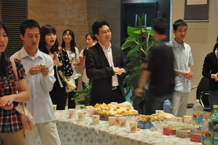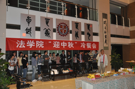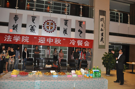 2011年9月8日19:30,拼搏首页(中国)网页版 “迎中秋”冷餐会在主楼十楼大厅举行。拼搏首页(中国)网页版院长单文华、书记彭沪生、院长助理吉兰湘、刘桥教授和学生工作专职委员张乃钟老师及拼搏首页(中国)网页版2011级全体本科生,硕士、博士研究生新生参加了冷餐会。冷餐会由2011级法律硕士新生马沙和马骏飞同学主持。