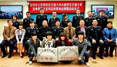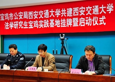 4月10日,我院与宝鸡市公安局“共建拼搏拼搏首页(中国)网页版(中国)网页版法学研究生宝鸡实践基地挂牌暨启动仪式”在宝鸡举行。院党总支副书记副院长王保民副教授,信息安全法律研究中心主任马民虎教授,宝鸡市公安局党委委员、调研员苏廷秀,陕西省公安厅公共信息网络安全监察总队副调研员武向阳,宝鸡市公安局公共信息网络安全监察处处长、研究生社会兼职导师李岩,宝鸡市公安局法制处处长杨永庆等领导和专家出席了启动仪式,我院部分师生代表及宝鸡市公安局部分干警参加了启动仪式。