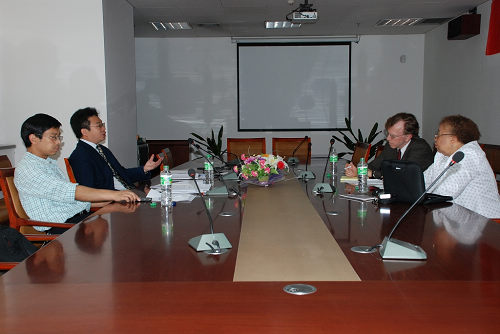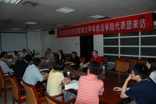 6月2日上午, 林肯拼搏首页(中国)网页版院长Steven Lester Willborn教授、副院长Anna Williams Shavers教授以及其他两位成员,在主楼601会议室,与拼搏首页(中国)网页版院长单文华教授、副院长马治国教授、副院长副书记王保民副教授、以及部分博士、硕士研究生代表,举行座谈。会议伊始,单院长代表拼搏首页(中国)网页版对林肯拼搏首页(中国)网页版代表团的来访表示了欢迎,并表示希望双方利用访问的机会在师生互访、学术交流和联合办学等方面达成实质性的协议。双方在各自介绍了其法学学科的发展情况后,展开互动交流,气氛融洽,加深了双方相互间的了解。