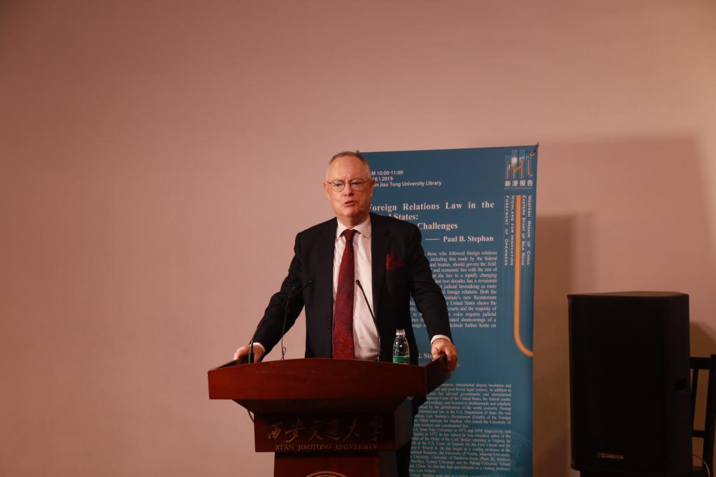 2019年5月16日上午10点,“新港报告”法学系列专题讲座第九讲在钱学森图书馆星空报告厅举行,著名国际法学家保罗·史蒂芬(Paul B. Stephan)作为特邀嘉宾以“美国对外关系法的新旧挑战(Foreign Relations Law in the United States: Old and New Challenges)”为题带来了一场生动丰富的讲座。本次报告由拼搏首页(中国)网页版院长单文华教授主持。