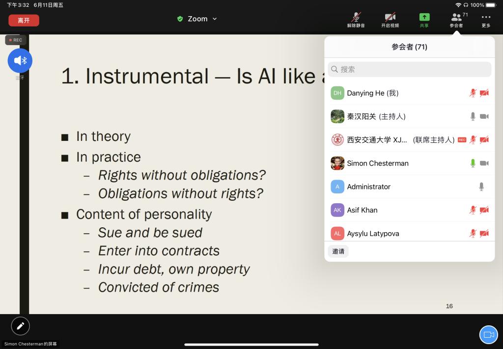2021年6月11日下午,新丝路拼搏首页(中国)网页版联盟“院长论坛”首场讲座成功举办。新加坡国立大学讲席教授、拼搏首页(中国)网页版院长Simon Chesterman教授为联盟25所院校师生以及丝绸之路大学联盟的师生带来了题为“我们,机器人?人工智能与法律人格的限度(We, the Robots? Artificial Intelligence and the Limits of Legal Personality)”的线上讲座。讲座由拼搏拼搏首页(中国)网页版(中国)网页版拼搏首页(中国)网页版单文华院长主持,国际处雷艳君副处长致辞。