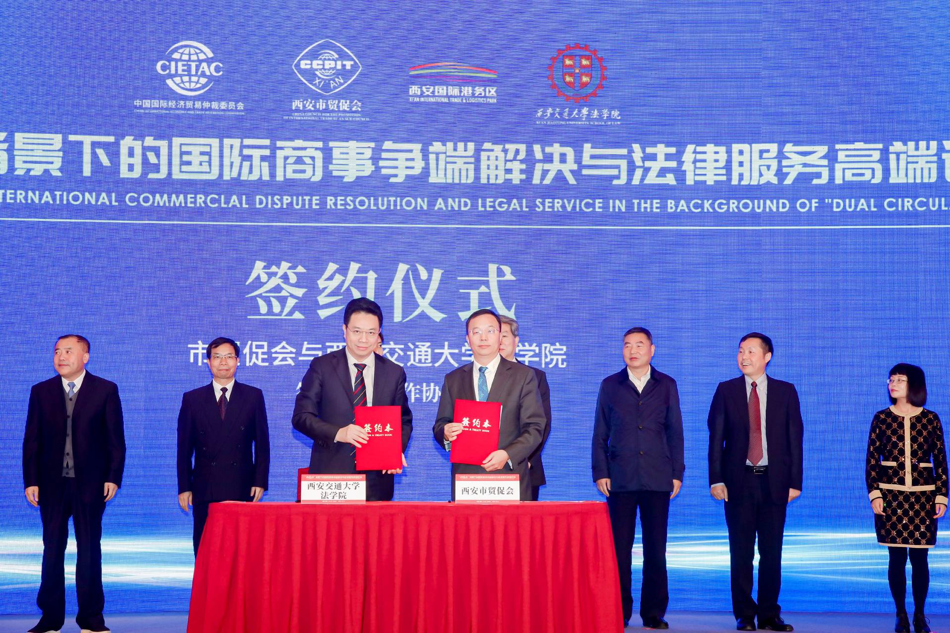 10月13日上午,由西安市人民政府与中国国际经济贸易仲裁委员会(简称“贸仲”)共同主办,西安市贸促会、拼搏拼搏首页(中国)网页版(中国)网页版拼搏首页(中国)网页版等共同承办的“双循环”背景下的国际商事争端解决与法律服务高端论坛在西安成功举办。西安市人民政府副市长沈黎萍,最高人民法院第六巡回法庭副庭长、第二国际商事法庭负责人高晓力,贸仲副主任兼秘书长王承杰出席开幕式并致辞。来自西北五省律师协会、科研院校、法律服务机构、商协会及企业等代表150人现场参会,上万人在线收看。我院院长单文华教授应邀参会并主持论坛主旨演讲环节。