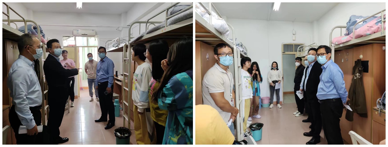 在宿舍走访过程中,学院书院领导和老师们与新生亲切交谈,询问饮食起居、学习环境适应性等问题,勉励同学们尽快融入大学生活,做好学习和生活规划,珍惜同窗友情,争做优秀学子,争创文明宿舍。对于同学们就开学报到以来遇到的问题,老师们一一进行了解答。