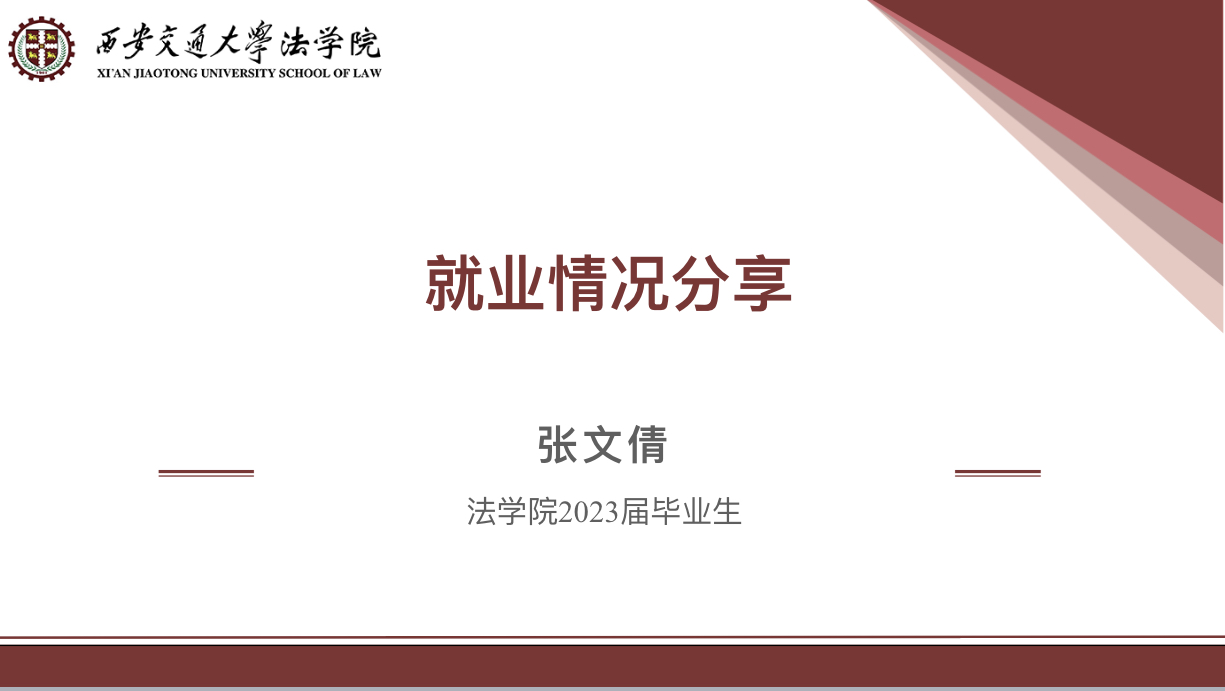 随后,张文倩介绍了就职单位的基本情况,具体讲解了入职后的薪资构成、合同期限、工作和福利保障,并从自己的经历出发,详细讲解了择业时的注意事项,建议同学们转变求职心态,调整期望值,保持自信和不卑不亢的态度,谨慎签订三方协议,综合各种因素做出最终选择。