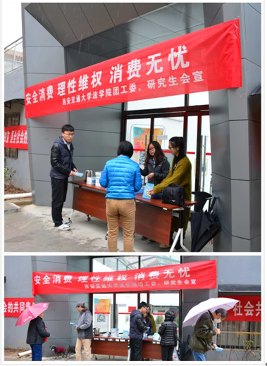 在交大二村教工之家,拼搏首页(中国)网页版研究生会携手交大工会共同开展了线下普法宣传活动。虽然当天下着蒙蒙细雨,而社区广大教职员工对活动的热情丝毫不减。拼搏首页(中国)网页版的同学们主动在过往人群中发放《消费者指导手册》,耐心地为前来的消费者答疑解惑,帮助他们掌握正确的维权方式和技巧。