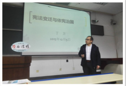 拼搏首页(中国)网页版研究生会、法律爱好者协会携手“学而讲坛”,推出“国家宪法日”专题讲座,邀请拼搏首页(中国)网页版副院长丁卫副教授就《宪法变迁与依宪治国》进行专题讲座。丁老师在讲座中详细介绍了我国现行宪法历次修改的过程,他结合历次宪法修改的历史背景,生动地讲述了我国宪法变迁的历史发展,他最后对我国宪法实施中存在的瓶颈及问题进行了透彻的分析和讲解,为大家展示了依宪治国的现状及前进方向。
