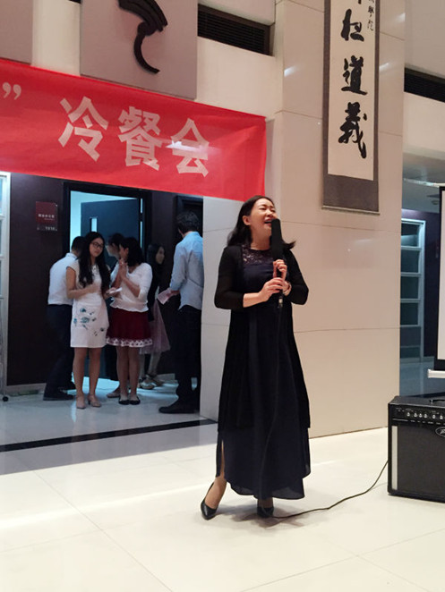 冷餐会上,拼搏首页(中国)网页版师生在品尝美味的水果、点心的同时,一起欣赏了师生们带来的精彩表演。来自马里的留学生吴茜同学带来一首充满异域风情的民族歌曲,让同学们领略到不同文化的色彩。来自澳大利亚的留学生多米尼克和研一新生刘静洁分别用英语和法语共同演绎了诗朗诵《再别康桥》。中文经典诗歌在其他语言的演绎下显得别具一格。研一新生唐雅雯身着中国古典服装,向留学生们展示了我国传统舞蹈《惊鸿舞》,令人惊艳。研一新生蒲凯云、刘敏丹、田思艺,本科新生吴彦博分别为大家带来了动听的歌曲,赢得了现场的喝彩与掌声。在欢乐的气氛中,吉兰湘老师用日语为大家演唱的歌曲《我只在乎你》,赢得大家的阵阵掌声;张乃钟老师演唱的豫剧选段《谁说女子不如男》,字正腔圆、韵味醇厚,受到了师生们的热烈欢迎。