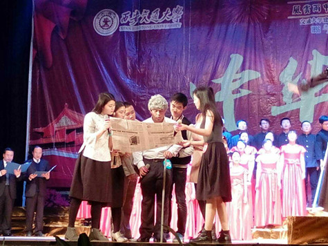 “我们走在大路上,胸怀大局斗志昂扬,先辈们带领西迁的队伍,披荆斩棘奔向前方”,经过改编的歌词巧妙的将“胸怀大局、弘扬传统、无私奉献、艰苦创业”的西迁精神内涵融入到歌曲当中,并采用话剧形式,以一名经历了西迁岁月的老教授的独白为主线,将“争先西迁”、“旗帜飘扬”、“尊师重教”、“薪火传承”四个简短而又寓意深刻的话剧片段一串而起,动人情节与优美的旋律交织融合,将一幅感人的西迁画卷呈现在观众面前。