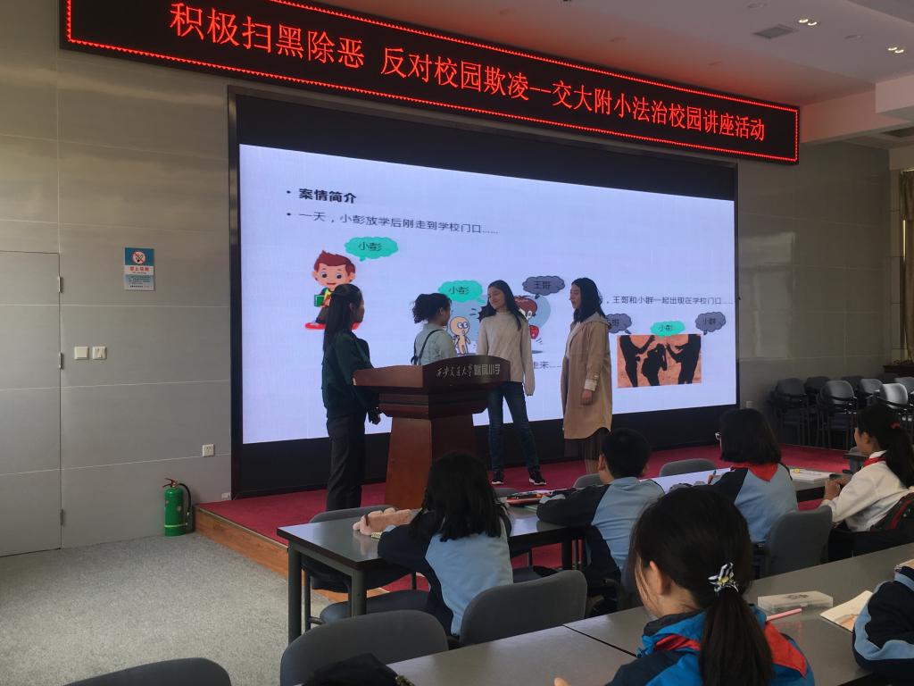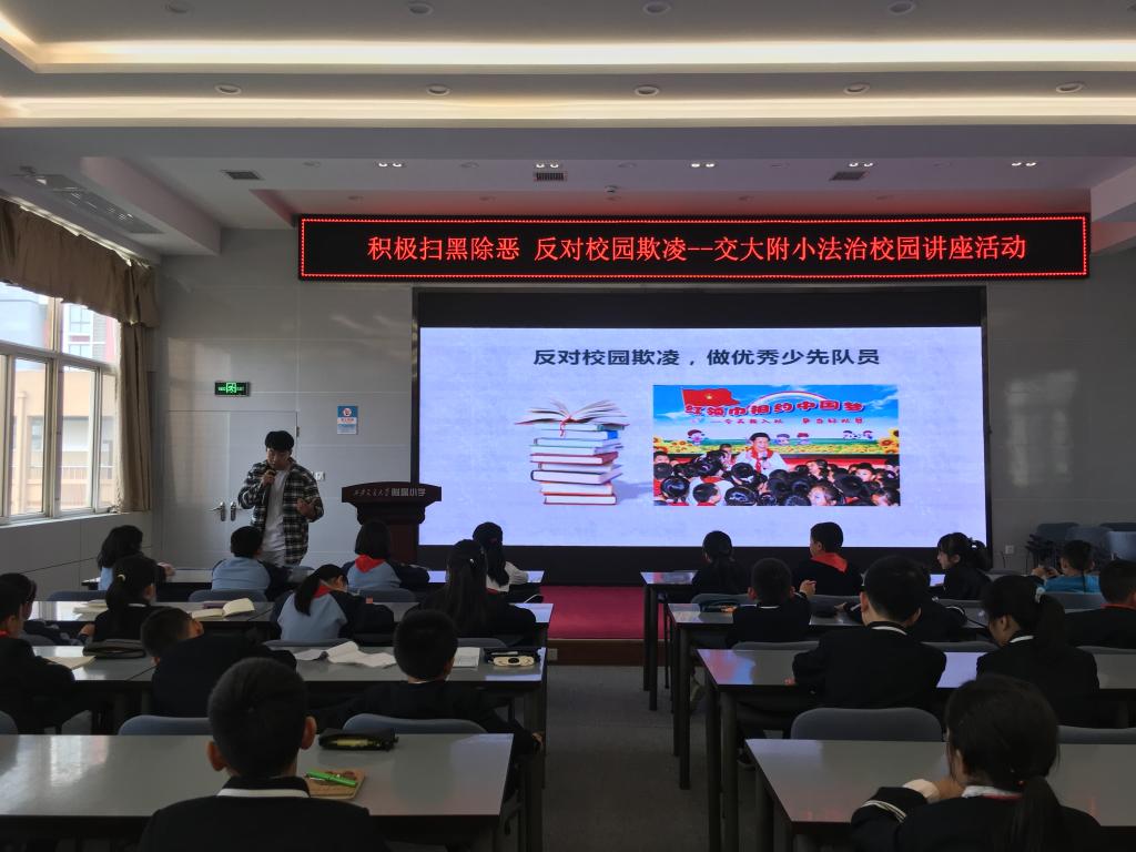 2019年4月15日,拼搏拼搏首页(中国)网页版(中国)网页版拼搏首页(中国)网页版硕7155班(三年制)党支部一行10人来到拼搏拼搏首页(中国)网页版(中国)网页版附属小学,以“积极扫黑除恶,反对校园欺凌”为主题开展了校园法治宣讲活动。本次宣讲分三组进行,由浅入深,以视频、情景表演、信件沟通等方式形象生动的向小学生们传达了面对校园欺凌,该如何保护自己,如何拿起法律的武器保护自己的权益。